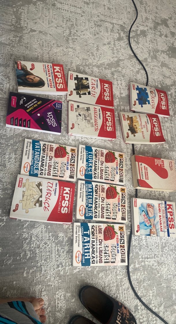 Türkçe, tarih, matematik ve genel kültür gibi konuları içeren KPSS sınav hazırlık kitapları seti. Farklı baskılar ve deneme materyalleri bulunur . KPSS tüm dersler soru bankası konu anlatımlı kitaplar. sıfır ve az kullanılmış ürünler almadan önce sorunuz ve ilan açtırdınız istediğiniz kitap için