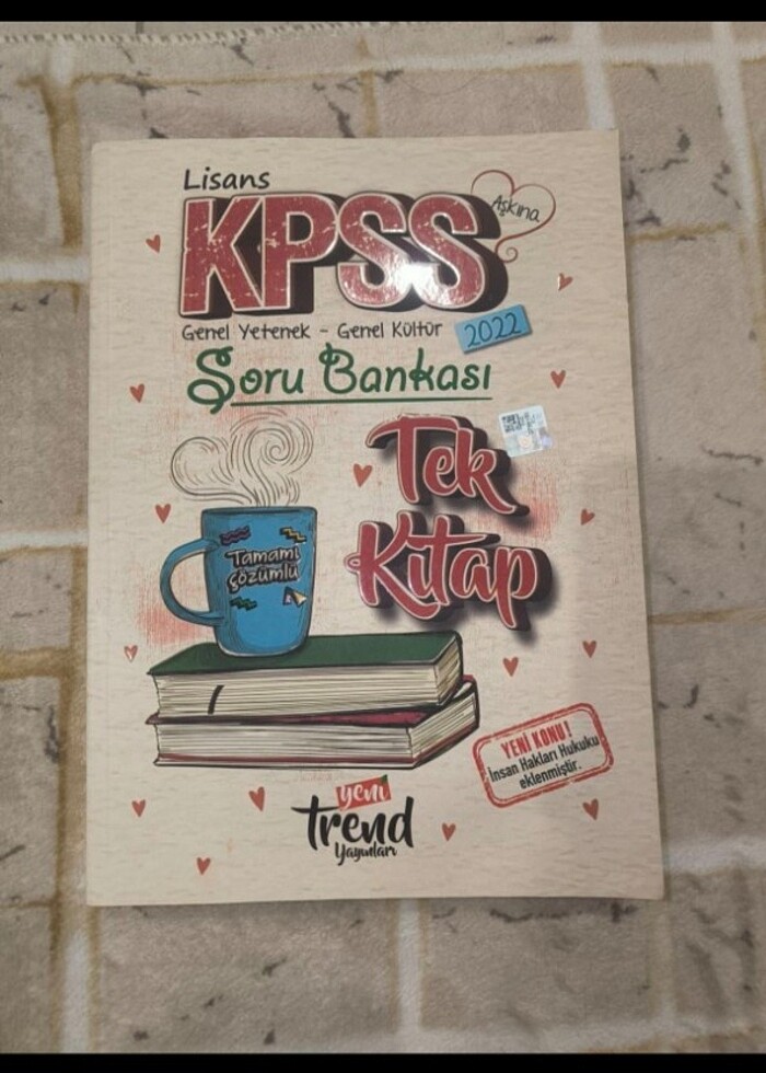 Ürün yeni trend yayınları KPSS Tüm dersler soru bankasıdır. Fotoğrafta görüldüğü gibi sadece işaretli olan testler çözülmüştür geri kalanlar tertemizdir ve toplamda 656 sayfadır.