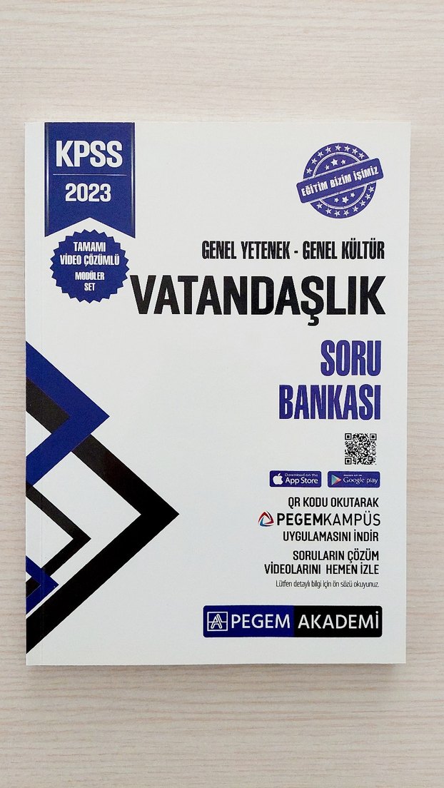 KPSS Vatandaşlık konularını içeren Genel Yetenek ve Genel Kültür soru bankasıdır. 202 sayfadır. Hiç kullanılmamıştır.