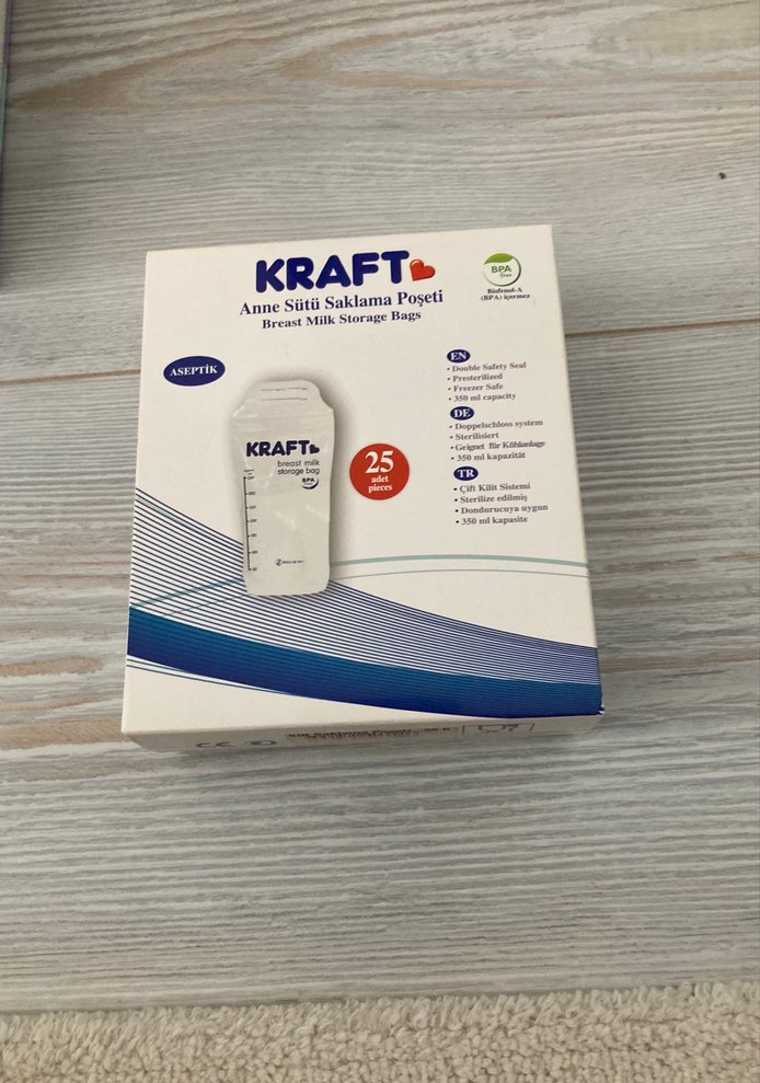 KRAFT anne sütü saklama poşetleri 25'li pakette, güvenli kapak ve hijyenik tasarıma sahiptir. Süt saklamak için uygundur.