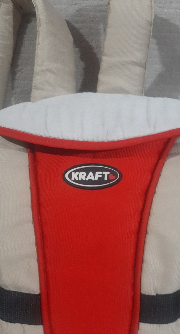 Kraft bebek taşıyıcı, kırmızı-gri renklerde, yumuşak dolgulu askılar ve güvenli tasarıma sahiptir. 10 kilodan fazlasına kadar taşıyabiliyor.