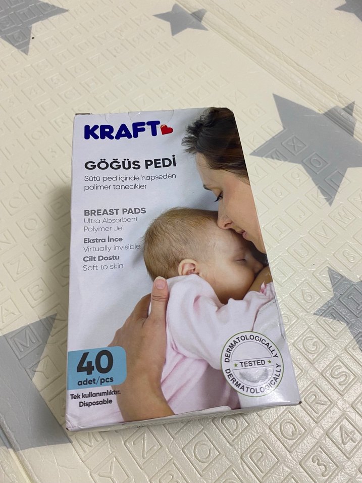 Kraft göğüs pedleri, ultra emici polimer jel içerir. Cilt dostu ve ince yapısıyla rahat kullanım sağlar. Tek kullanımlıktır.