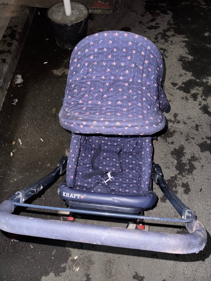 Kraft marka gri renkli bebek arabası, çiçek desenli ve yastıklı oturma alanına sahiptir. Emniyet kemeri bulunmaktadır.