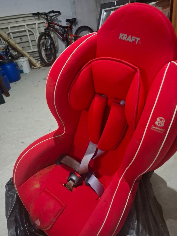 Kraft markalı kırmızı çocuk oto koltuğu, güvenli kemerleri ve rahat destek yastıklarıyla konforlu yolculuk sağlar. 9-36 kg