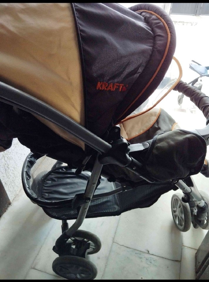 Kraft marka koyu kahverengi bebek arabası, sağlam iskelet ve rahat oturma alanı sunar. Alt kısmında pratik saklama sepeti bulunur.Kapanir olan tente yanında kırılma vardır kapamaya engel olmuyor