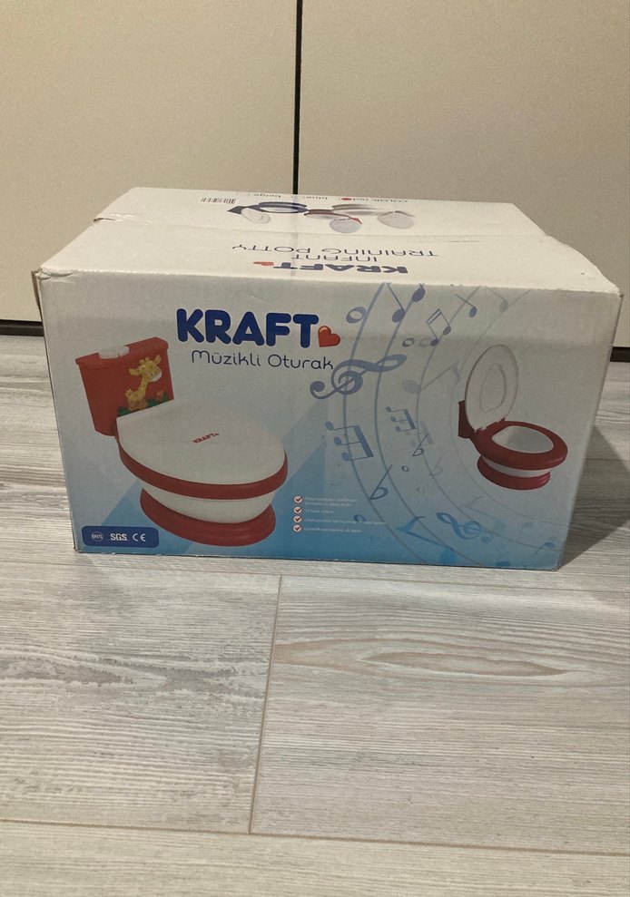 Kraft müzikli bebek oturağı, rahat tasarımı ve eğlenceli müziği ile çocuklar için tuvalet eğitiminde destek sağlar.