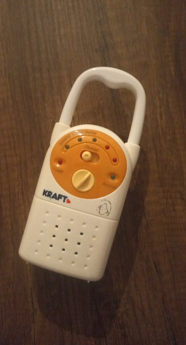 Kraft bebek monitörü, renkli kontrol paneli ve beyaz gövdesiyle kolay izleme sağlar. Gösterge ışıkları ve taşıma kulpu bulunur.
