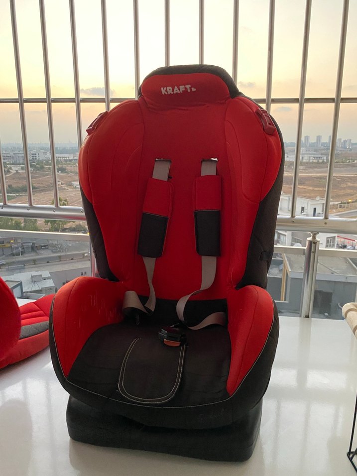 KRAFT markalı, renkli kırmızı çocuk oto koltuğu, güvenli emniyet kemeri ve yumuşak yan desteklerle rahatlık sağlar. Az kullanıldı bi kusuru yoktur