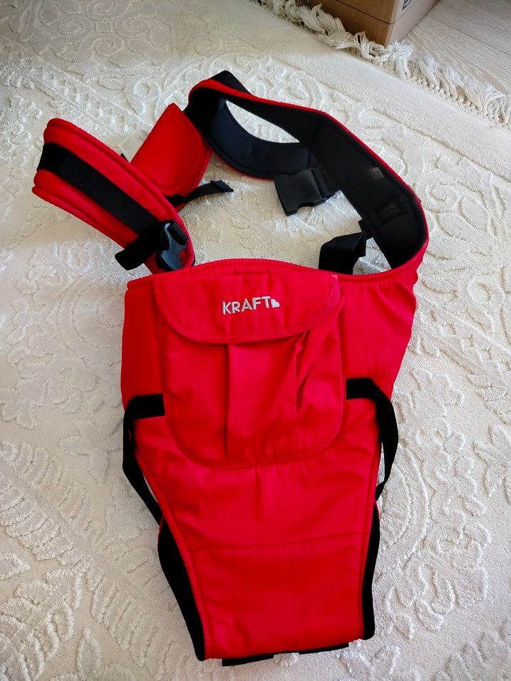 KRAFTA kırmızı bebek taşıyıcı, ayarlanabilir askılarla rahat ve güvenli destek sağlar. Yumuşak ve sağlam yapısıyla bebeğinizi güvenle taşıyabilirsiniz.