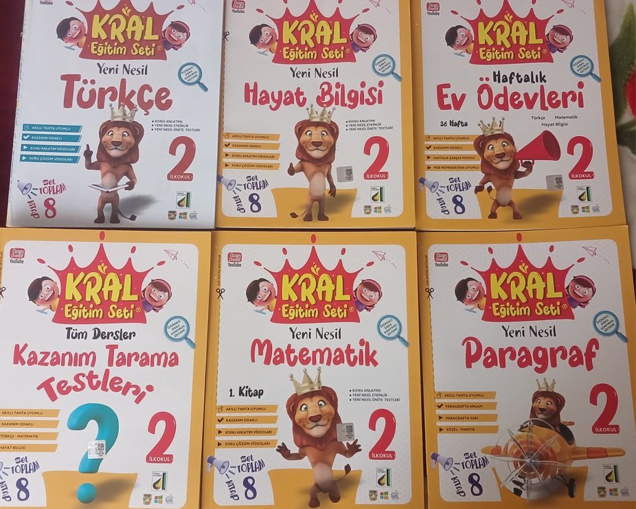 Kral Eğitim Seti, 2. sınıf için matematik ve hayat bilgisi gibi dersleri içeren 8 kitaptan oluşuyor. İlkokul öğrencileri için yeni nesil içerik sunar.