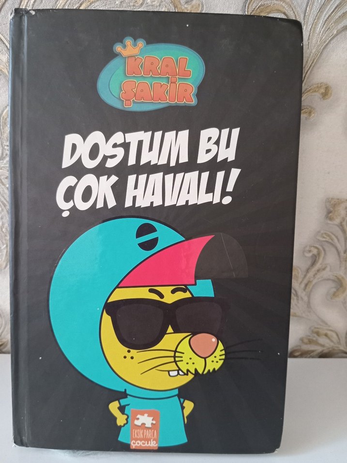 Kral Şakir serisinden 'Dostum Bu Çok Havalı!' adlı çocuk kitabı, güneş gözlüğü takan renkli bir çizgi karakter içerir.