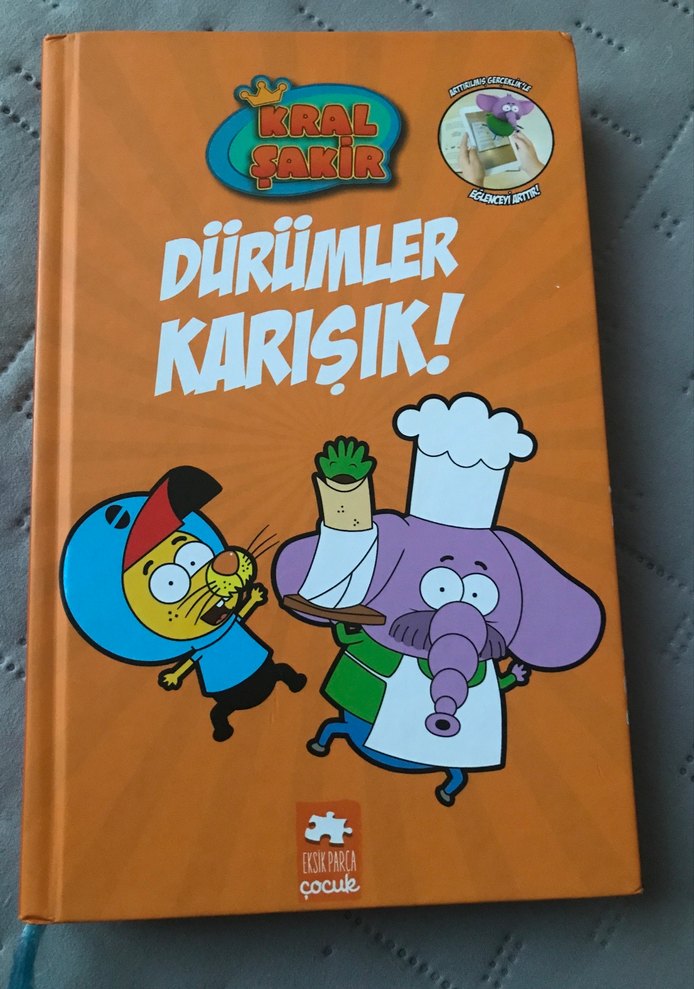 "Kral Şakir Dürümler Karışık!" çocuk kitabı, renkli çizgi karakterler içerir ve eğlenceli bir okuma sunar.