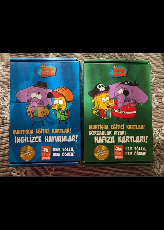2 ADET Kral Şakir Muhtişim Eğitici Kartlar! - Korsanlar Diyarı Hafıza Kartları! -Varol Yaşaroğlu Muhtişim Eğitici Kartlar! Hem De Arttırılmış Gerçeklikle! Selam Arkadaşlar ben Şakir! Herkesin bildiği ismimle Kral Şakir! Bu muhtişim kart setimizde hem çoook eğleniyor hem de hafızamızı geliştiriyoruz. Karakterlerin eş kartlarını bulduğunda arttırılmış gerçeklikle kartlardan çıkıyorlar. Heyooo! Arttırılmış gerçeklik teknolojisiyle ben, Fil Necati Ağabey ve diğerleri adeta telefondan çıkıp yanınıza geliyoruz! Çok Eğleniyoruz çok! E hadi o zaman, ne duruyoruz, hemen maceraya başlayalım! Kaçırmayın