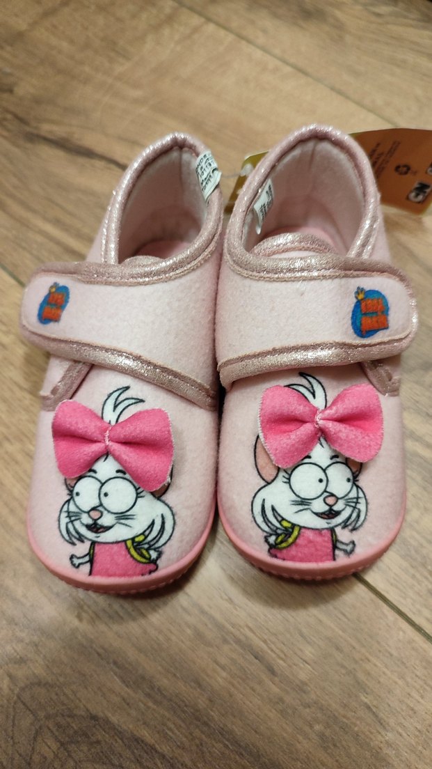 sıfır hiç kullanılmadı 23 numara Pembe, baskılı çizgi tavşan ve pembe fiyonk detaylı kız çocuk sıcak terlikleri, yumuşak kumaş