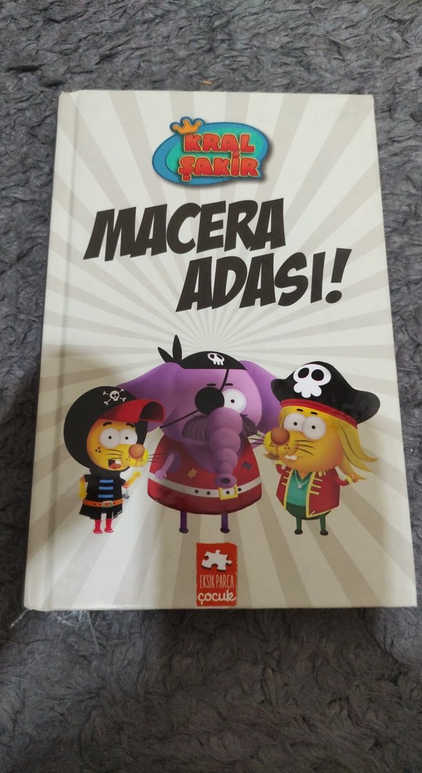 "Kral Şakir Macera Adası" çocuk kitabı, korsan kostümlü renkli karakterlerle dolu eğlenceli ve maceralı bir hikaye sunuyor. ☠️