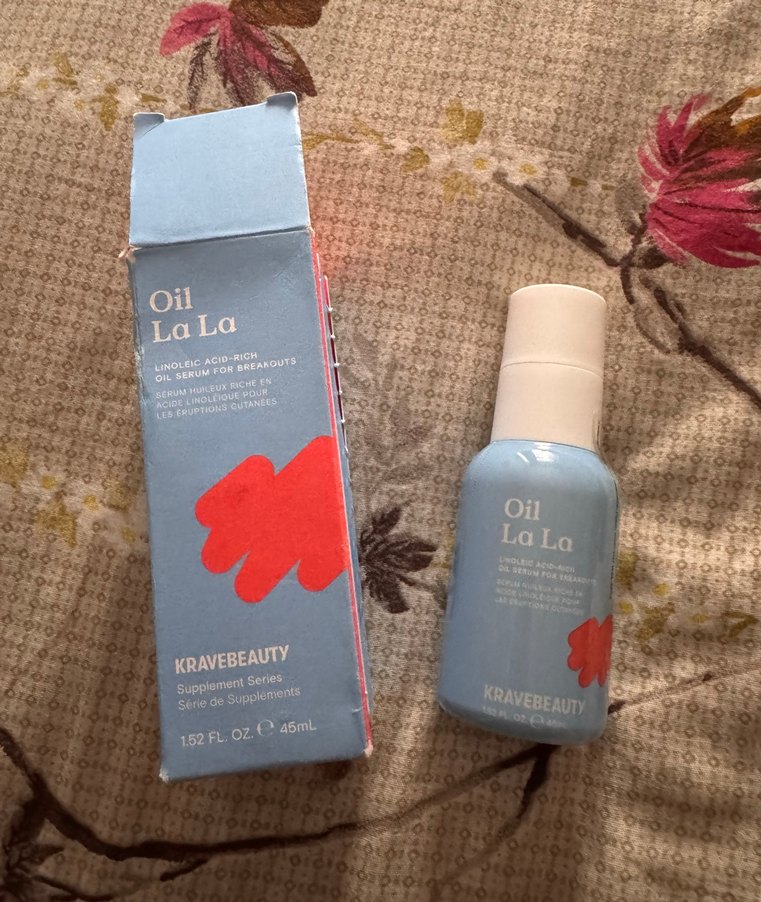 KraveBeauty Oil La La, linoleik asit içeren cilt serumu. Sivilce oluşumunu azaltır ve cilt dokusunu iyileştirir. 45 ml şişede. Hıç kullanılmadı