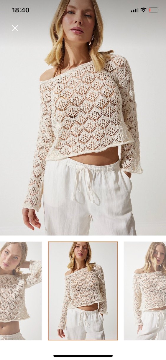Krem ajurlu triko üst