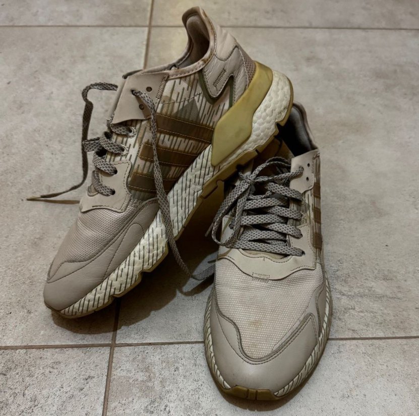 Krem renkte, bağcıklı günlük spor ayakkabı. Ürün orijinaldir. Önünde küçük bir leke var yıkanınca geçer diye düşünüyorum.