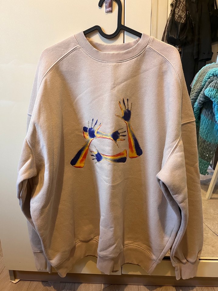 Krem renkte, baskılı ve uzun kollu kadın sweatshirtü. Yuvarlak yakalı, rahat kesim ve yumuşak, sıcak kumaştan üretilmiştir. Günlük kullanıma uygundur. ️