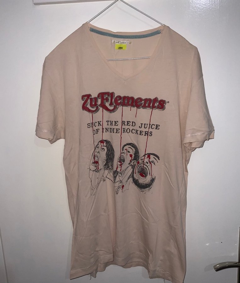 Kısa kollu ve yuvarlak yakalı, baskılı grunge punk desenli bol kesim kadın tişörtü.