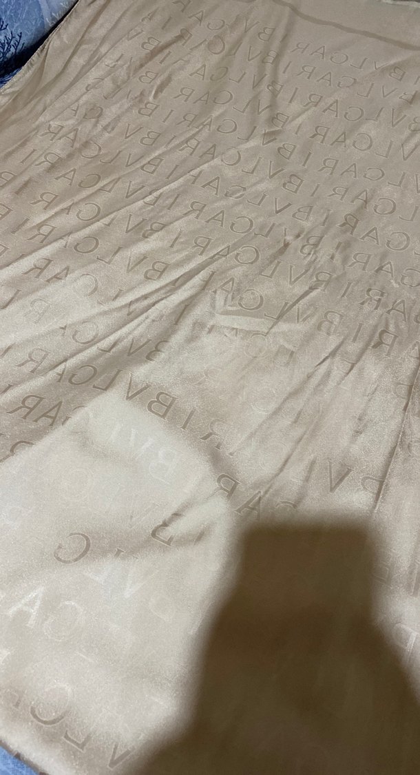 Bej renkli, keten kumaştan, dökümlü tasarıma sahip şal. Parlak yüzeyi ve hafif yazı detaylarıyla bohem ve Paris tarzını yansıtır.