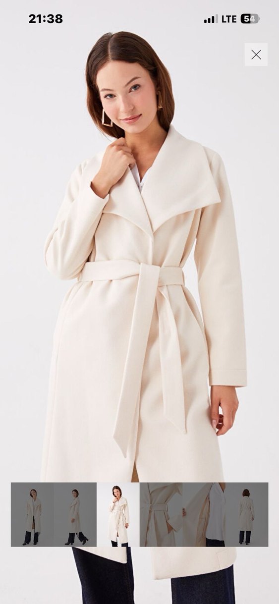 Krem bej Renk Kuşaklı Kadın Kaban