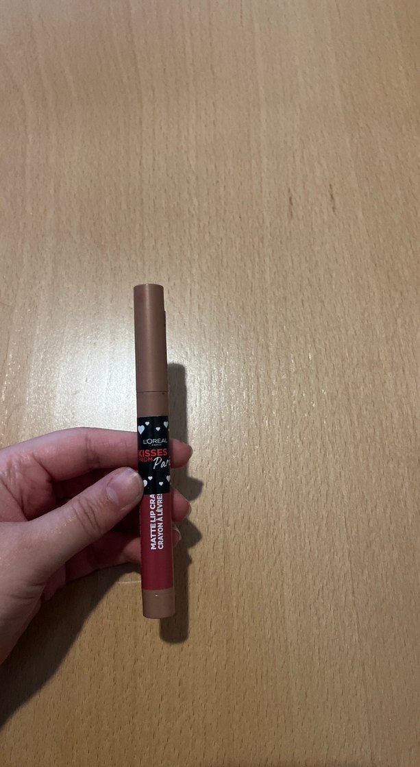 Mat dokulu, ince kalem formunda krem bej ruj. Koyu bej renk ve pürüzsüz yapıya sahip.