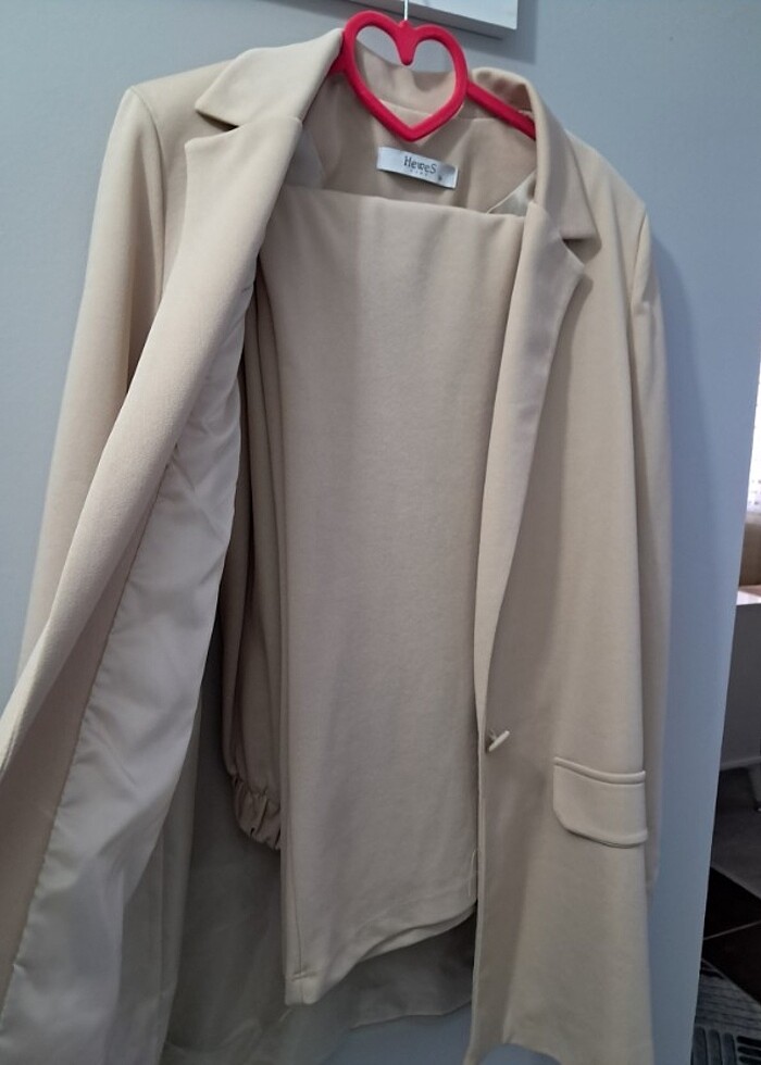Krem blazer takım