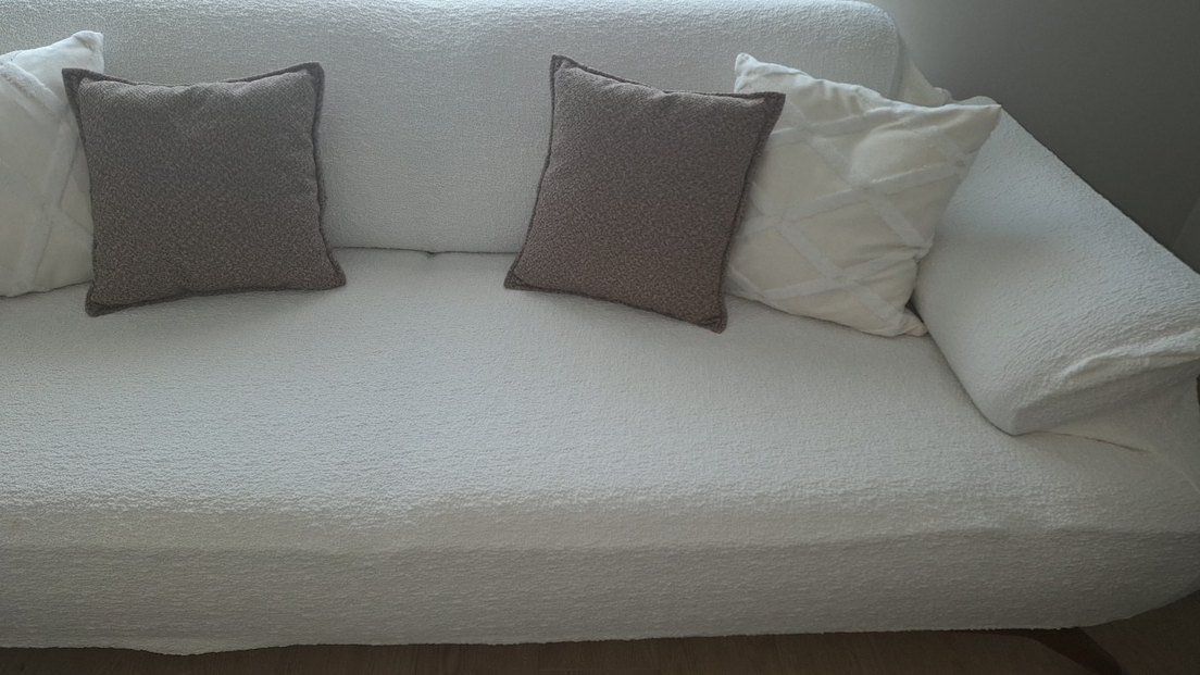 krem bukle koltuk 3lü ortusu 1adet var başka sormayiniz yeni alindi cok az kullanildi hicbir defosu yoktur