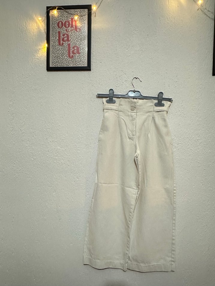 Krem renktedir, belinde düğme detayları ile büzgüleri bulunmaktadır. Belinim arkası lastiklidir. Minimalist ve rahat şıklık sunar, günlük kullanıma uygundur. 32 bedene de olur. Bel 31 basen 40 boy 86 paça25 cm