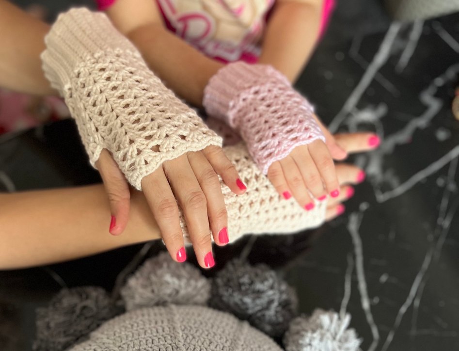 Pastel pembe renkli, dantel detaylı örgü eldivenler, bohem ve retro tarzı yansıtan sıcak bir görünüm sunar. Pembe ve krem rengi eldivenin fiyatıdır ikisi birden satılır pembe 5 yaşa uygundur