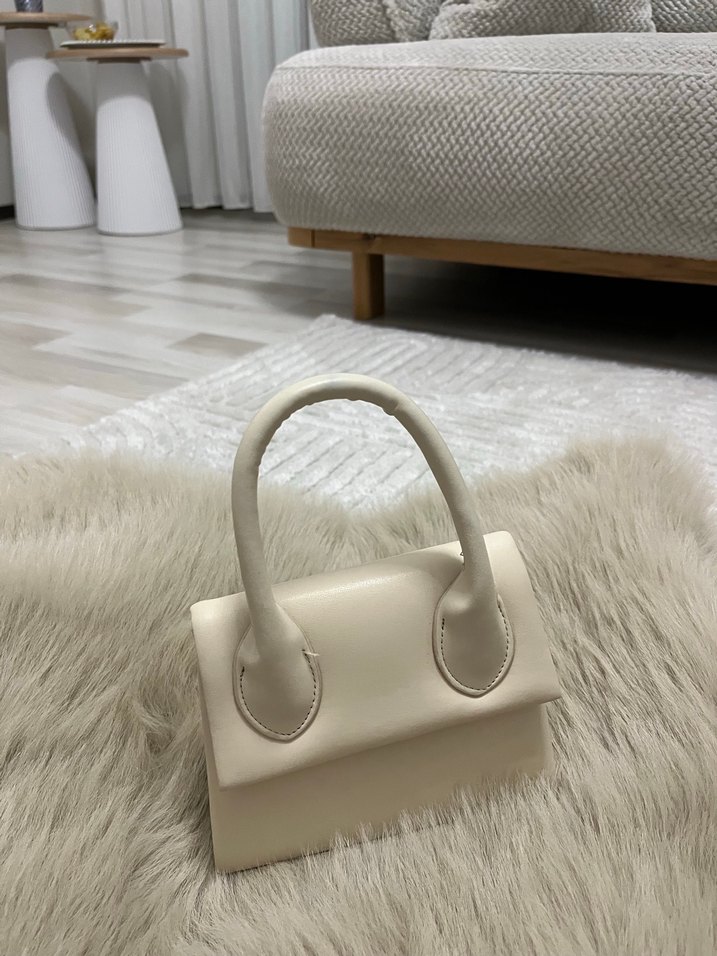 Krem deri kadın çantası, minimalist tarzda, günlük kullanıma uygun.