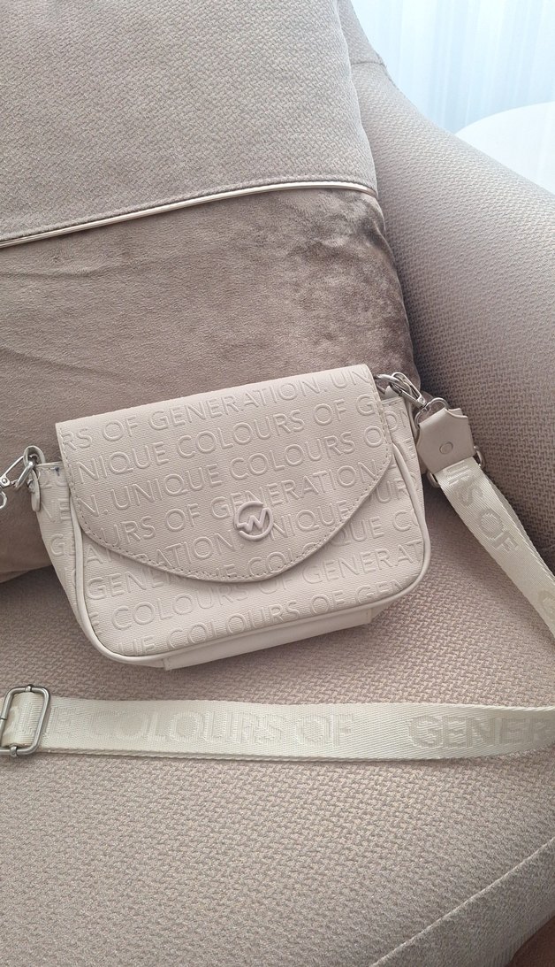 Baskılı desenli krem deri çapraz askılı çanta, ayarlanabilir askıyla günlük kullanıma uygundur herhangi bir defosu yoktur az kullanılmıştır