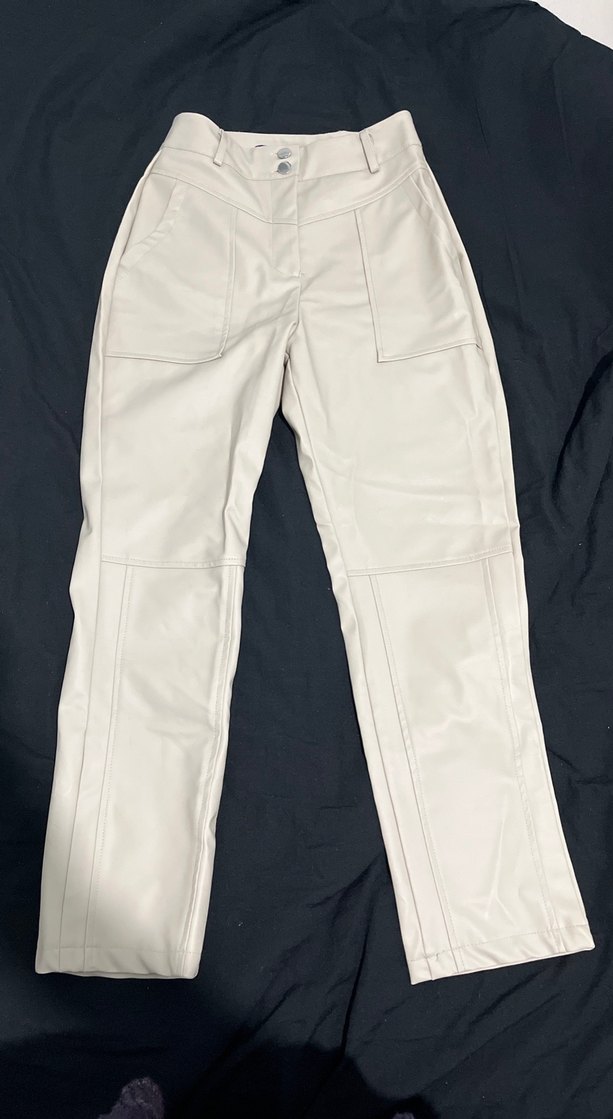 Krem deri kadın pantolon, normal boy ve regular fit ile günlük kullanıma uygun, şık ve rahat bir tasarıma sahiptir. Kusuru fotoğrafta gösterilmiştir