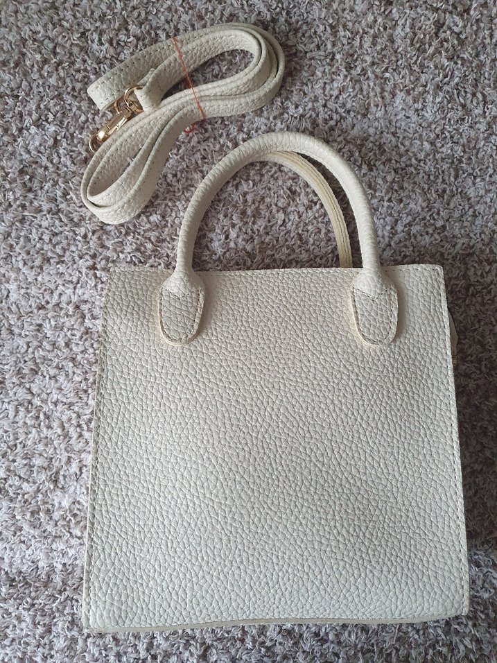 2 kez kullanıldı en×yükseklik × iç genişlik= 18×17×7 , bir iç cebi mevcut ( boya lekesi var son görselde bakınız) el ve omuz çantası, el sapı dahil boyu 27 cm. Fermuarını yarı açık bırakınca su şişesi dahil koyulabilir dar değil iç kısmı, ancak ben küçük çanta kullanamadığım için satıyorum. Kotondan 700 TL ye alınmıştı.