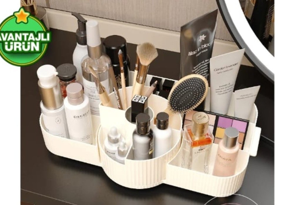 krem dönen makyaj organizeri, fırçalar, şişeler ve güzellik aletleri için çoklu bölmelere sahiptir. Kozmetiklerinizi düzenli tutar. beyaz rengıde var ızmır ıcı elden teslım