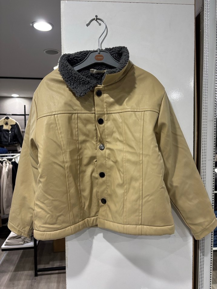 Krem Düğmeli Dışı Suni Deri İçi Yün Erkek Çocuk Mont