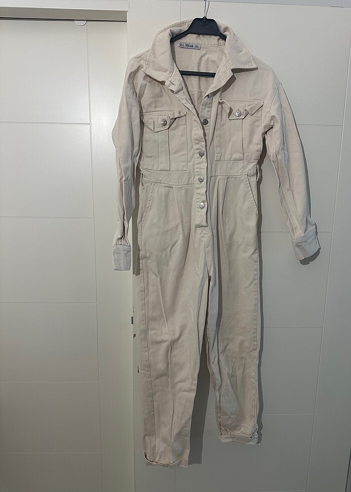 Ürün bir kez giyildi defosu lekesi hiç bişeyi yok. Kalın keten kumaştır , üstte durusu mevcut.