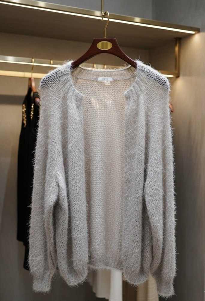 Krem el örgü, uzun kollu ve yuvarlak yakalı salaş kesim kadın hırka, günlük kullanım için rahat ve bohem tarzda.S-M beden için uygundur