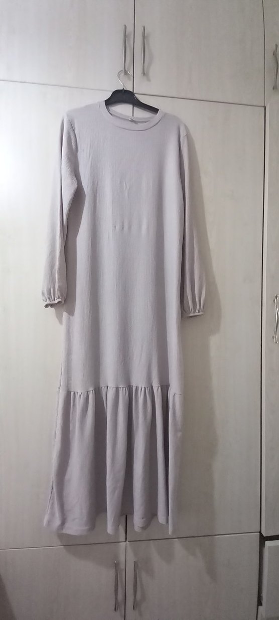 krem renkli esnek kumaş elbise 40 beden fakat 42 44 uyumlu iki kol arasi 51 cm