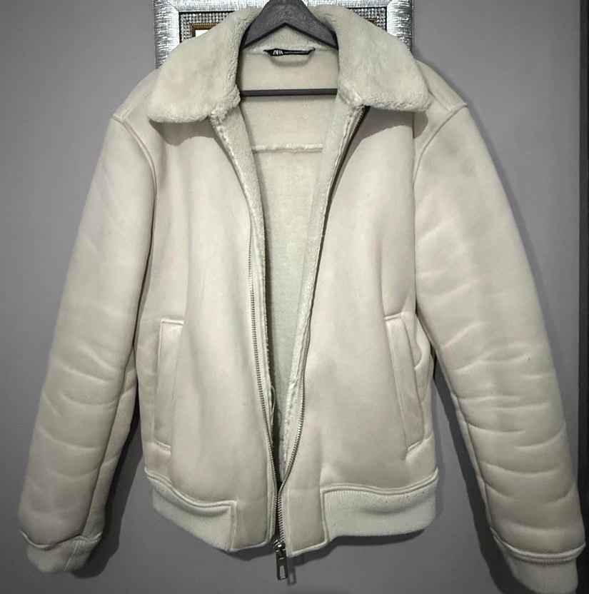 Kerem rengi zara erkek ceket, kürklü yakalı ve normal boyda. Strappy kollu, rahat kesim ve desen içermeyen sade tasarıma sahip. Günlük kullanım için uygun. İhtiyaç fazlası olduğu için satılık.