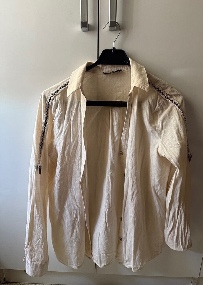Yanları süslü krem gömlek