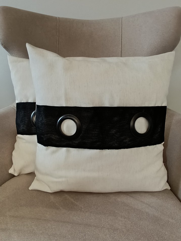 Krem renkte, ortasında siyah rengi güpür bulunan Kırlent Kılıfı , zarif bir kontrast oluşturur, doku ve stil katar. ️ 40x40 cm dir