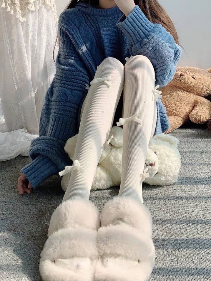 Küçük fiyonk detaylı, yumuşak kumaştan krem külotlu çorap. Günlük kullanıma uygun, rahat ve şık bir görünüm sağlar.