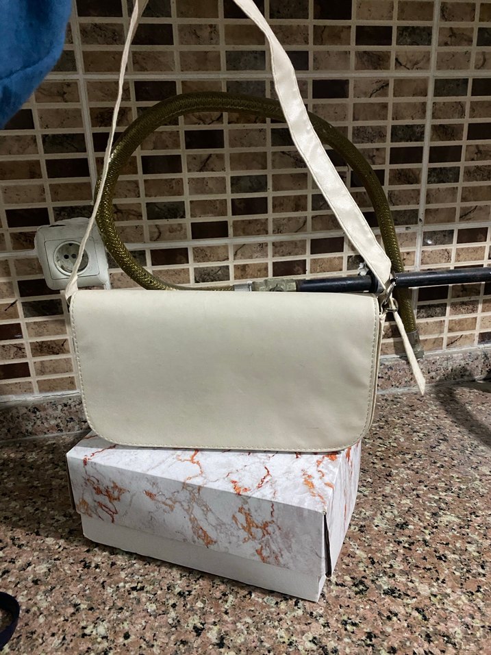 Krem rengi dikdörtgen çanta kemer detaylı kullanıma engel bir durumu yoktur detaylı resim isteyene atabilirim.(kullanılmayan tezgahtır )