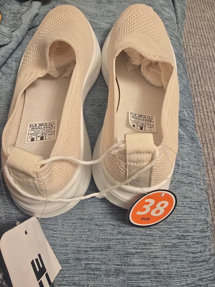 krem renkli, elastik üst yapıya sahip, kadın spor ayakkabısı. Trendy casual ve sokak stiline uygun, hafif ve desensiz tasarım. Spor için uygun, 38 numara.