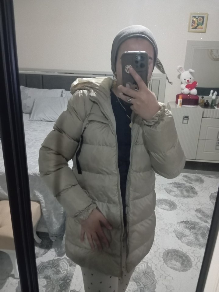 Krem Kapüşonlu çocuk 14,15 yaş şişme mont