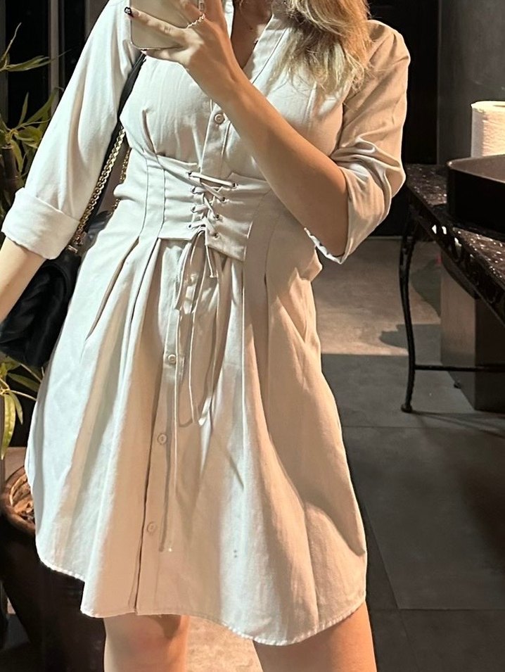Stradivarius keten elbise. Öndeki bağlamalı detayla bedeninize göre ayarlayabilirsiniz