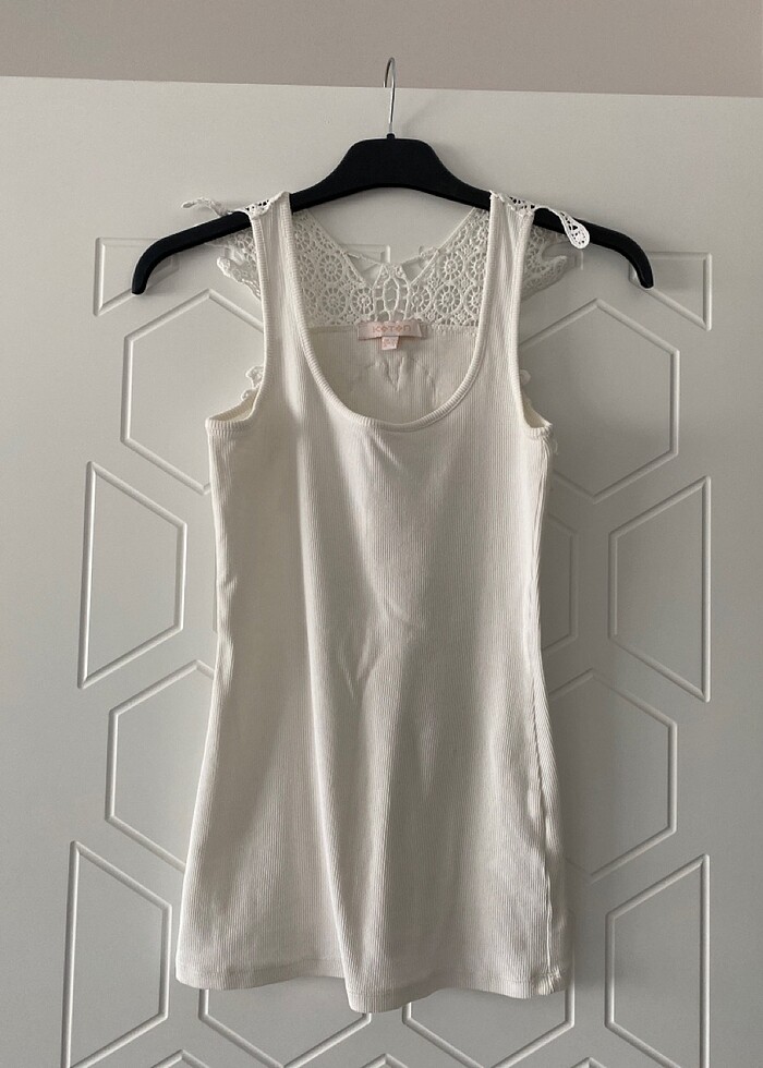 Kelebek detay dantelli pamuklu penye bluz Az kullanıldı ön tarafta çok küçük bir leke var belki leke çıkarıcı ile çıkar listelerken farkettim Small beden