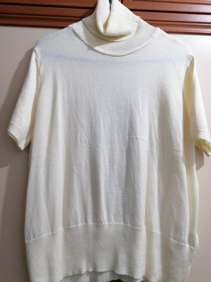 Krem renkte, kısa kollu ve boğazlı olarak tasarlanmış, pamuklu, rahat kesim kadın kazak. Minimalist ve sade tarzıyla günlük kullanıma uygundur.